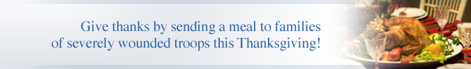 Our goal is provide a $60 gift card to as many severely wounded troops as possible so they can feed their families over the Thanksgiving holiday.